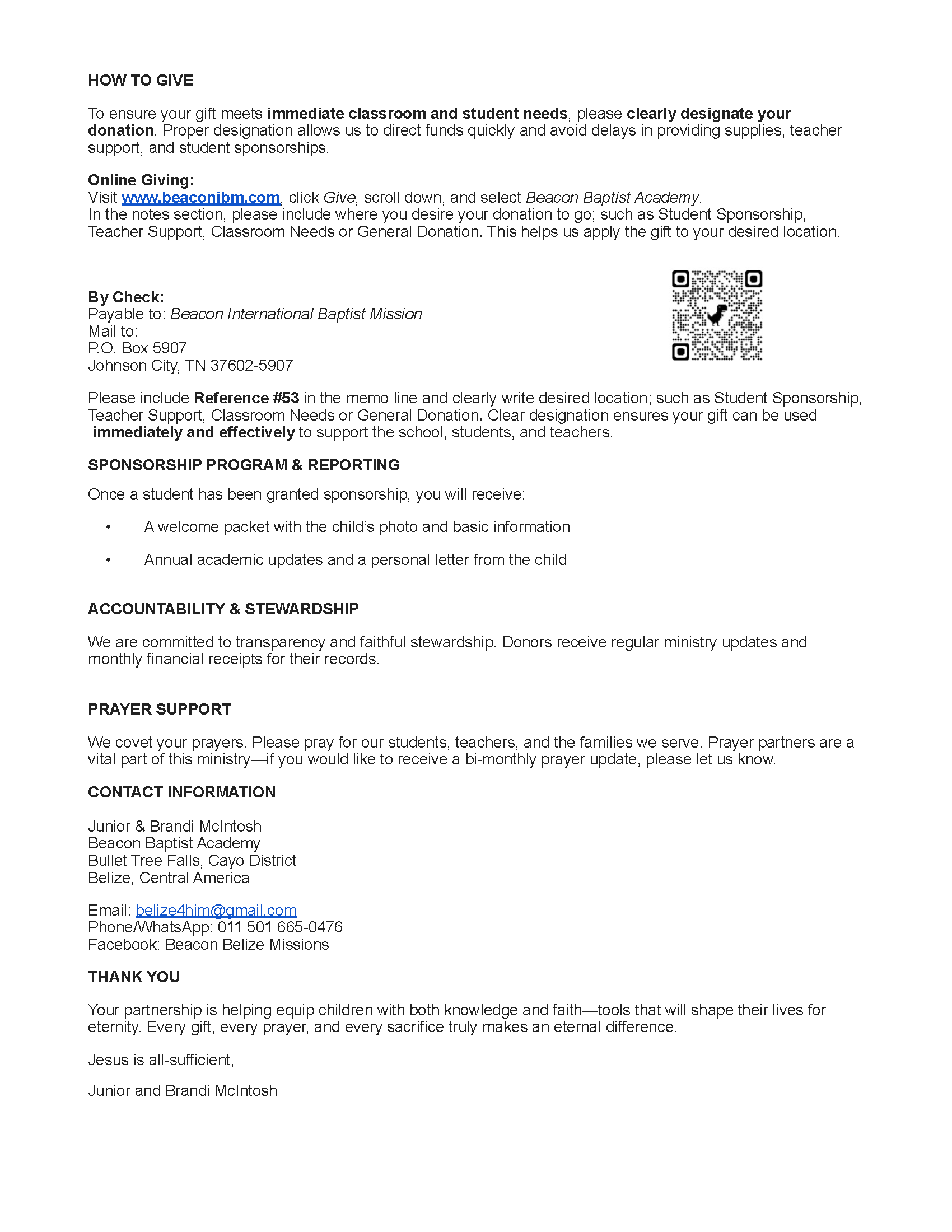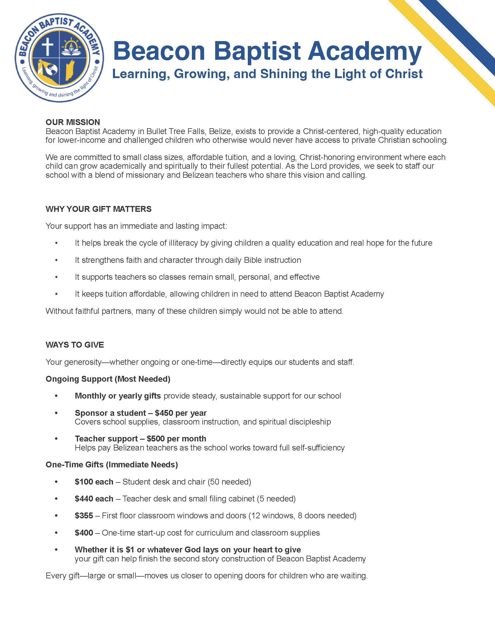 If God is calling you to support the building of Belize Baptist Academy, please click this link:Â I want to support this ministry!
